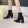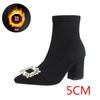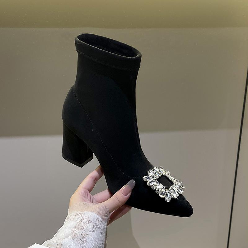 Spitzer dicker Absatz Herbst und Winter dicker Absatz Internet-Berühmtheit Strass quadratische Schnalle High Heel dünne Stiefel Fleece elastische Sockenstiefel Wildleder Schu
