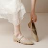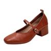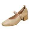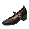 Oma-Schuhe aus Leder, dicker Absatz mit Mary Jane, französische eckige Spitze, Einzelne Schuhe für Damen, mittlerer Absatz, neu, Frühling und Herbst, vielseitige Damenschuhe