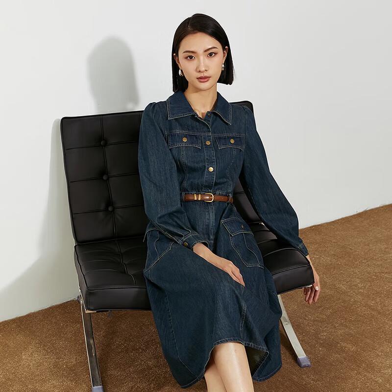 Elegantes Damen-Denim-Langarmkleid in mittlerer Länge