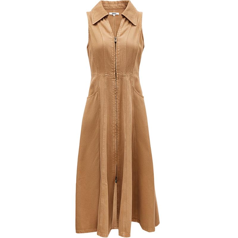 Experience effortless style with the ONLY 2024 Autumn A-Line Denim Midi Dress. Crafted from a comfortable blend of 69% Lyocell and 31% Cotton, this trendy dress features a flattering A-line silhouette, a classic turn-down collar, and a stylish high-waist design with a zipper. Perfect for commuting or a relaxed vacation.
