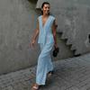 Damen Lässig Wickel V-Ausschnitt Kalte Schulter Jumpsuit Outfits Hose Romper