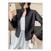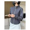 Ribbed Fleece Slim Stand Collar Cardigan Short Jacket Women Spring Autumn Outerwear Early Fall Top