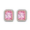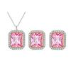 Bright Princess Pink Long Square Diamond Set Chain Electroplating Two-Color Zircon Necklace Earrings Square Diamond Color Treasure Set