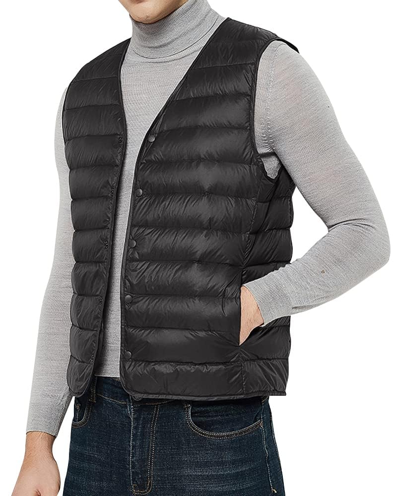 MDMYXJP Collarless Down Ultralight Inner Cold Compact MD108 Men's Vest, Vest, Lightweight, Weather, Storage, (M, Black)