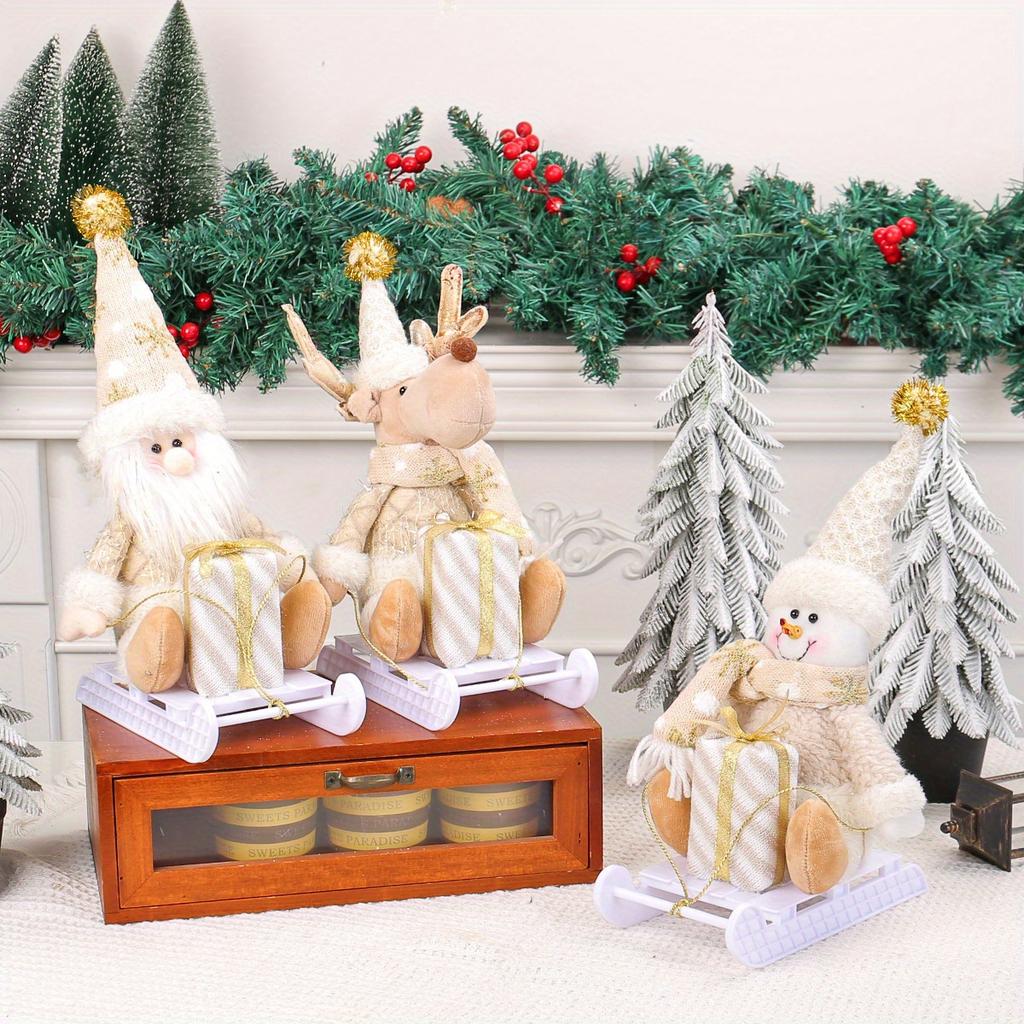 1Pc Christmas Santa Claus Elk Sleigh Doll Window Display Ornaments, for Living Room Window Glass Door Christmas Tree Decoration
