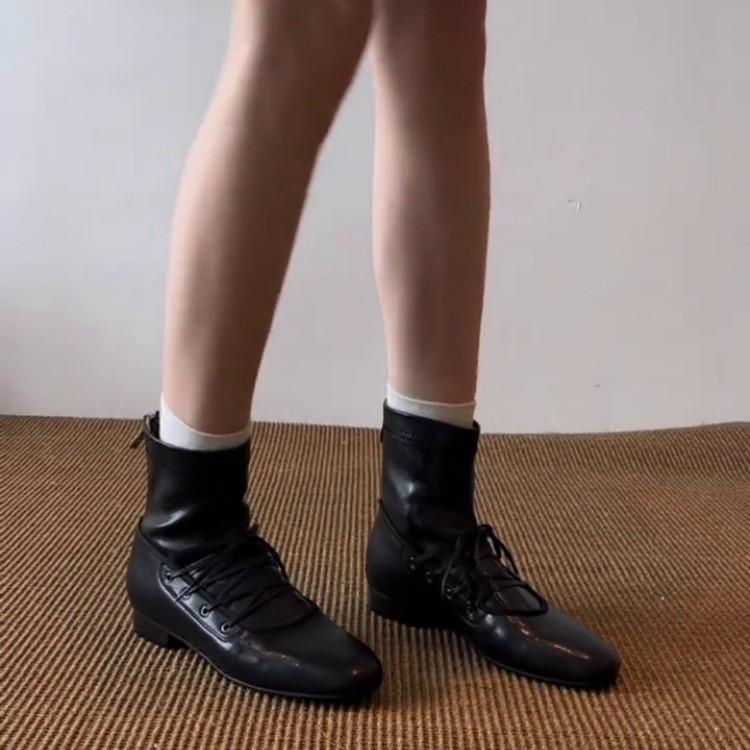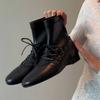 Weiche Lederversion~ Retro runde Spitze flache Sohle dünne Martin-Stiefel 2025 neue vielseitige Schnürung elastische dünne Stiefel kurze Stiefel