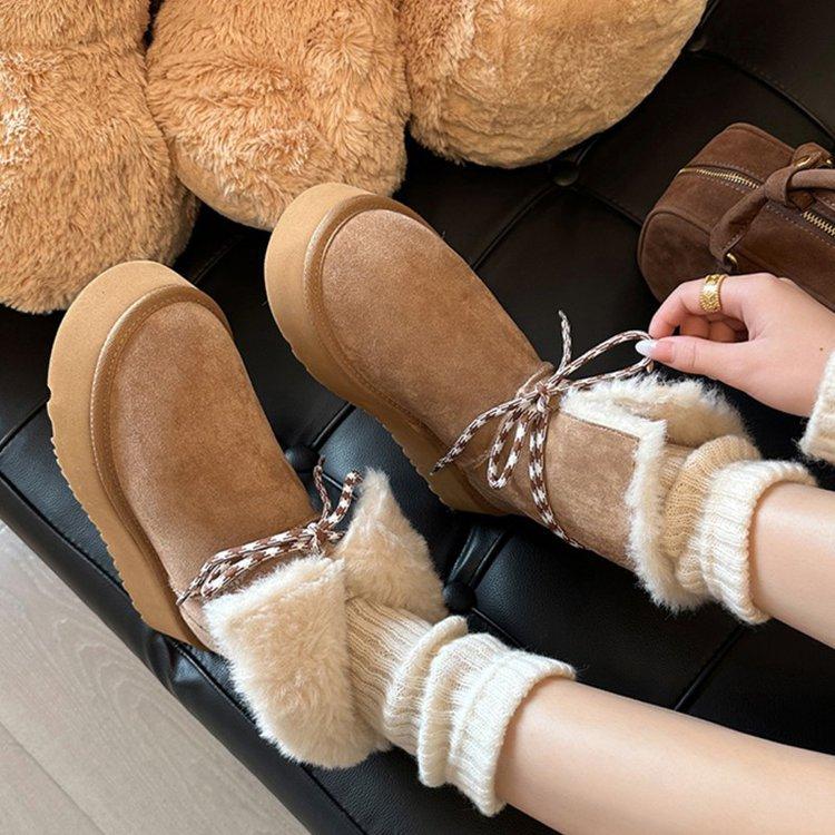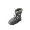 Rindsleder-Version Riemen dicke Sohle Schneestiefel Damen 2025 neu Samt warm Nordost große Baumwollstiefel verdickt flauschige kurze Stiefel