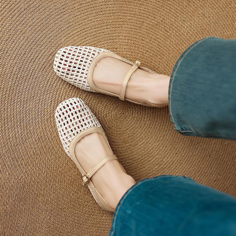 Französisch schön nicht müde Füße kleine einzelne Schuhe Damen flacher Boden weiche Sohle atmungsaktiv hohl Mary Jane Damenschuhe bequem Mesh Sandalen