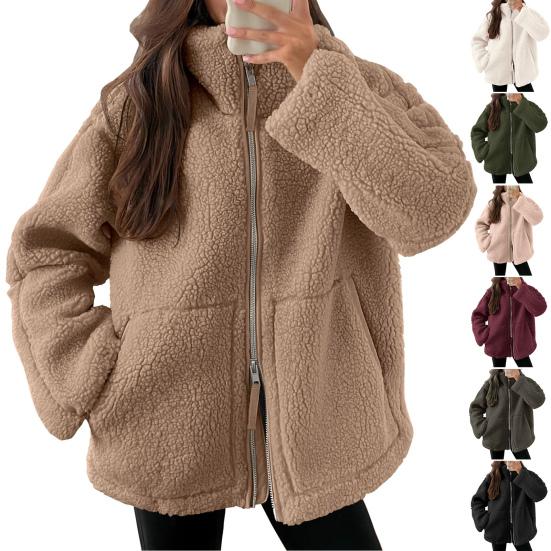 Diese Fleecejacke für Damen verfügt über einen durchgehenden Reißverschluss und einen Stehkragen sowie lange Ärmel und ein einfarbiges Design für müheloses Tragen. Zwei große Seitentaschen bieten zusätzliche Funktionalität zum Tragen von Gegenständen oder zum Warmhalten der Hände an kühlen Tagen.