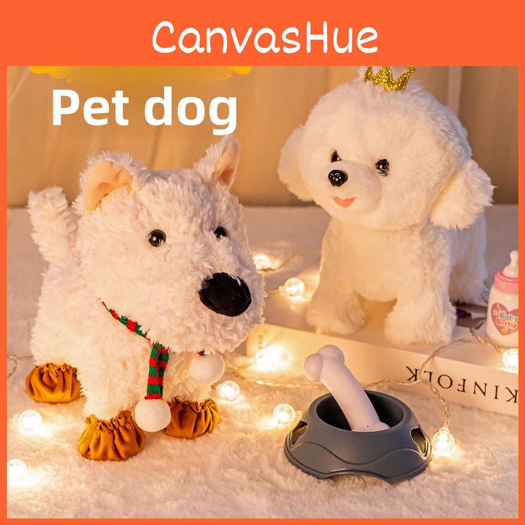 This interactive toddler pet dog features singing and moving functions that promote early learning and play. Made of durable plastic, The toy is ideal for playrooms and encourages sensory development. Wipe clean with a damp cloth for maintenance.