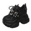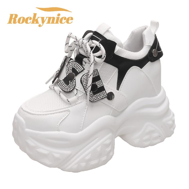 Damen Plateau Leder Sneaker Herbst 10CM Sportliche Dad Schuhe High Top Klobige Freizeitschuhe Frau Dicke Sohle Bling Weiße Schuhe