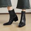Neue Damen-Lederstiefel Leder große Größe mittlerer Absatz Damenstiefel Gummisohle Schaft Herbst und Winter Rindsleder vielseitig spitz kurze Stiefel