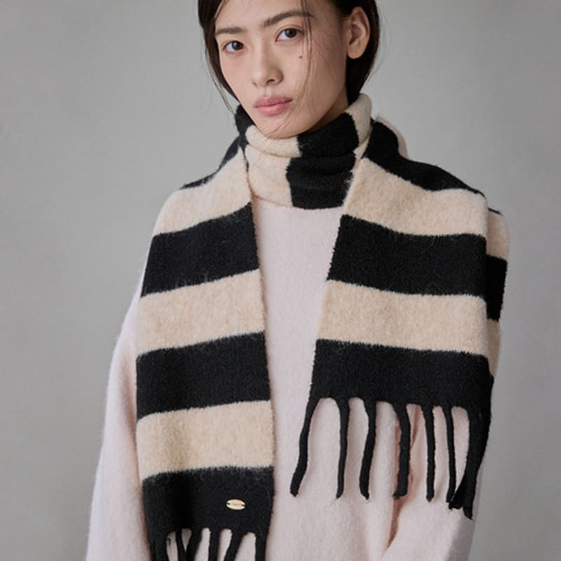 COQUET Heritage Stripe Wool Muffler Cream Black