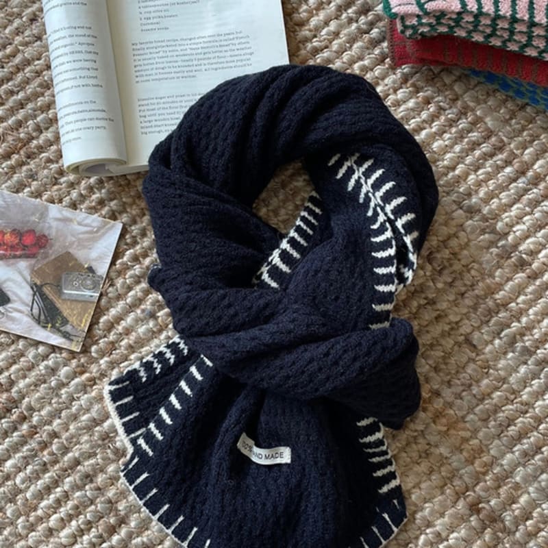 LOOKING4U Stitch Handmade Knit Muffler Black