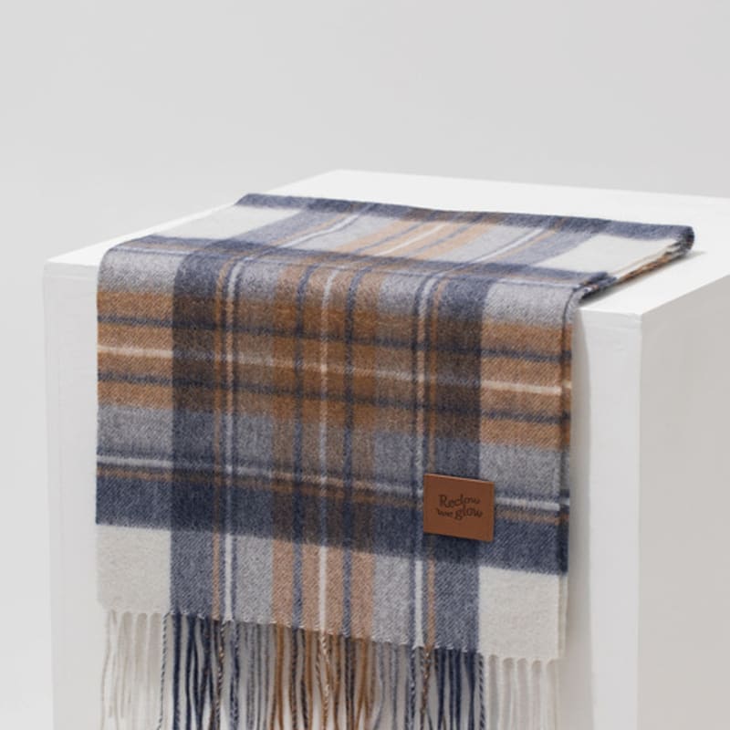 RECLOW MUNM check CASHMERE 100% MUFFLER CARROT