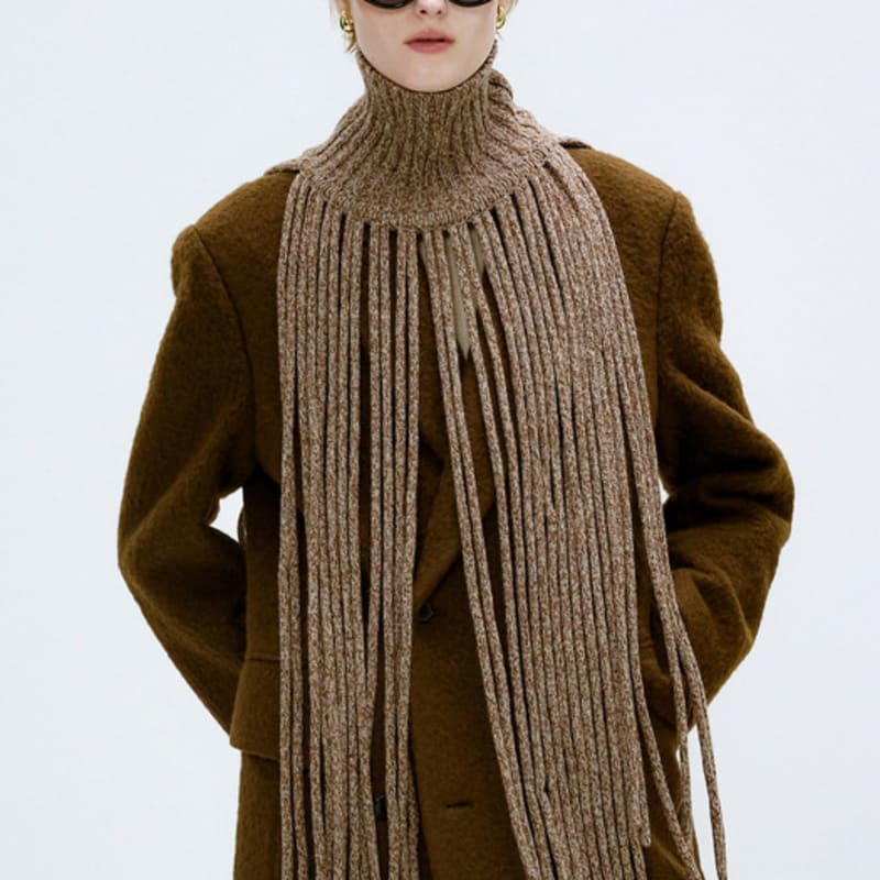 L’H.A.S HIGH-NECK TASSEL KNIT WARMER_BROWN