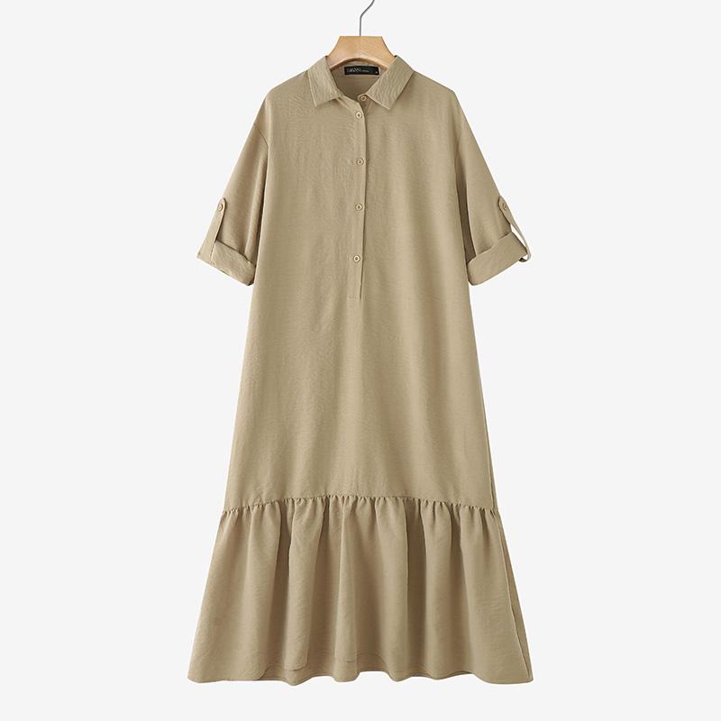 ZANZEA Damen-Kleid, locker, lässig, Umlegekragen, langärmelig, langes Hemdkleid