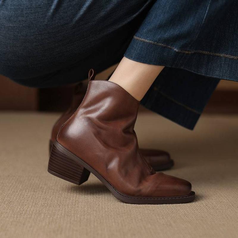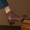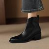Neue Damen-Rindsleder vielseitige Martin Stiefel einfarbig Seitenreißverschluss Übergröße mittlerer Absatz Damenstiefel dicker Absatz Reißverschluss mittelhohe Stiefel