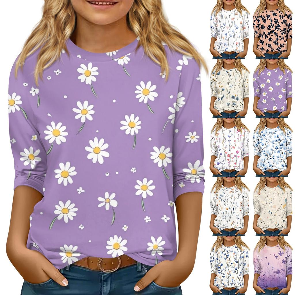 Kinder 3/4 Ärmel Tops Casual Print T-Shirt Rundhals Pullover Bluse