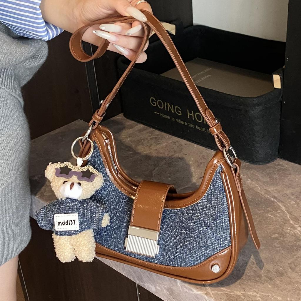Canvas splicing shoulder bag crescent bag large capacity high quality fashion personalized locomotive bag casual versatile messenger bag