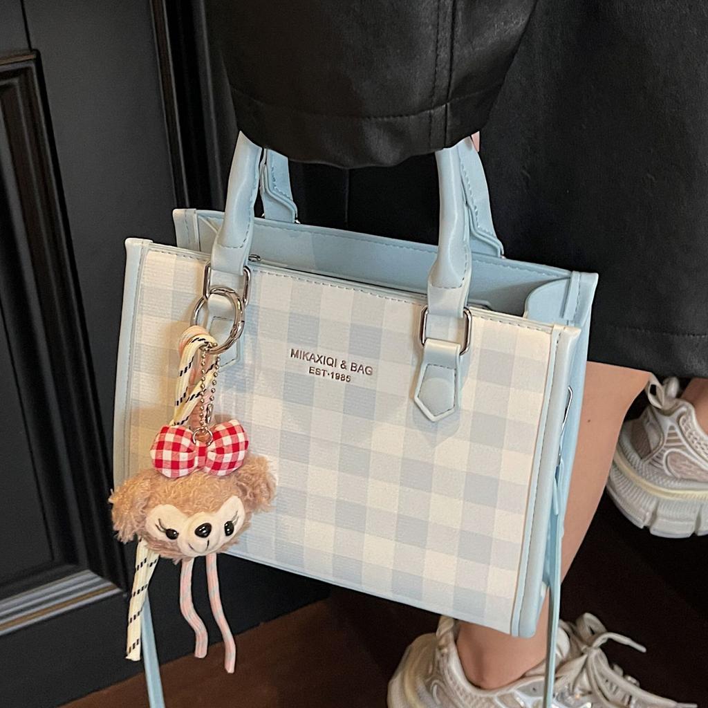 Versatile large-capacity commuter bag women's new Korean version of foreign-style plaid handbag fashion casual messenger bag