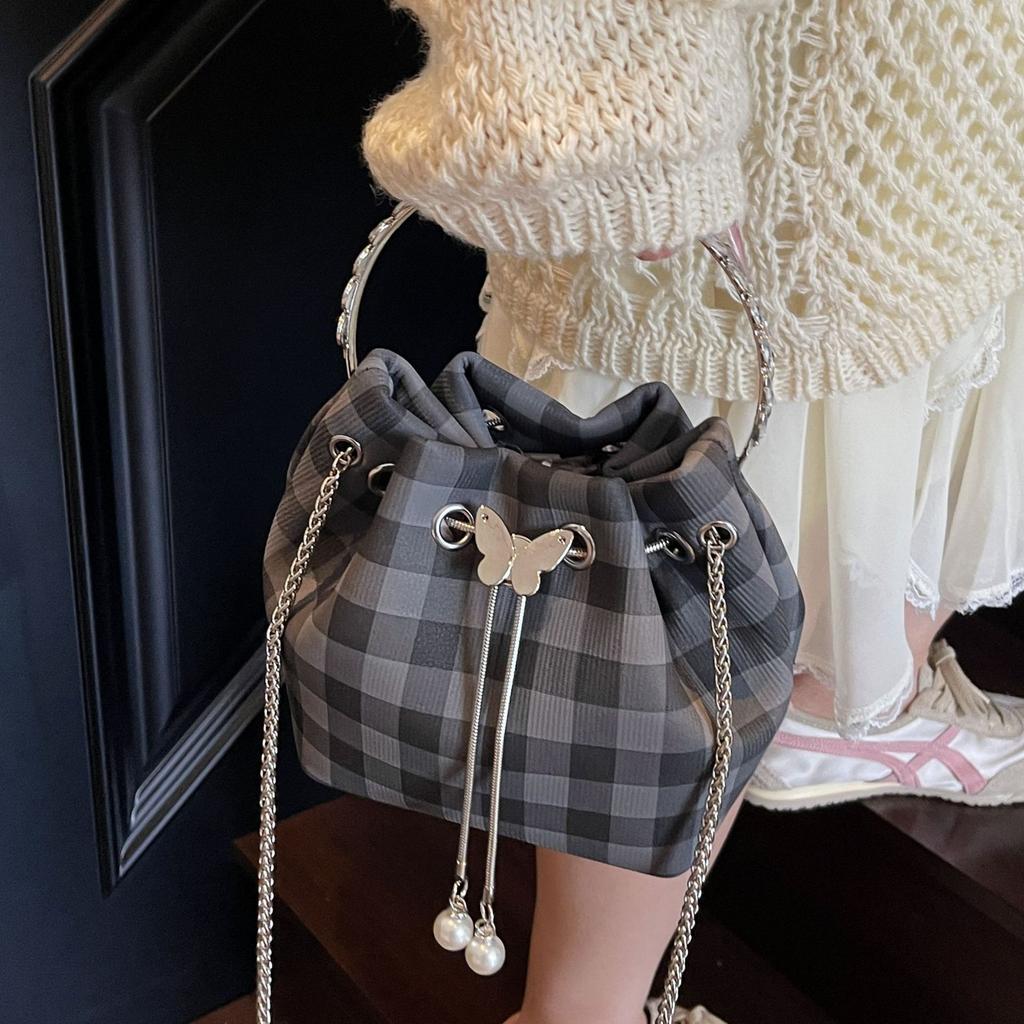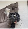 Korean niche design simple and fashionable portable small bag women's 2025 summer new crossbody plaid bucket bag tide