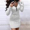 Damen Pulloverkleid Herbst Winter Neu Reißverschluss Strickpullover Mode Einfarbig Langarm Oberteile Lässig V-Ausschnitt Damenpullover