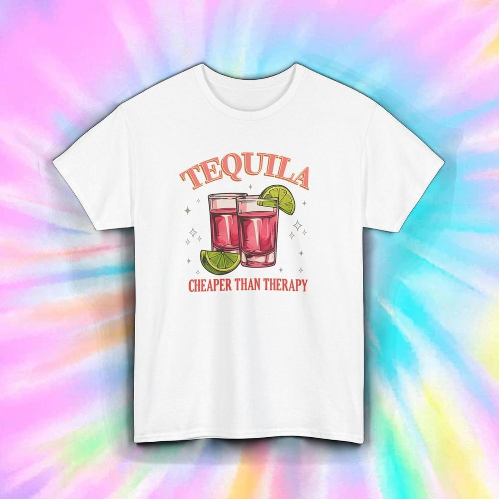 Tequila Cheaper Than Therapy T-Shirt | Funny Drinking Bar Party Graphic Tee
