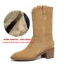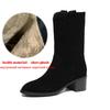 Krazing Pot Cow Suede Nubuck Winter Round Toe Modern Boots Med Heels Slip on Knitwear Women Mid-calf Boots