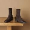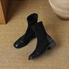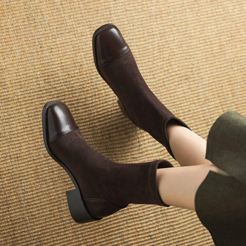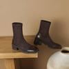 Herbst und Winter Mittelhohe Wildleder Ritterstiefel Damen Bequem Ärmel Quadratischer Absatz Lederstiefel Koreanische Version Quadratische Spitze Gummisohle Med