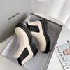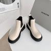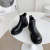 Herbst und Winter runde Spitze einfarbig große Größe mittelhohe Stiefel mittlerer Absatz dicksohlige Lederstiefel Schlupf Stiefel für Damen neue Martens