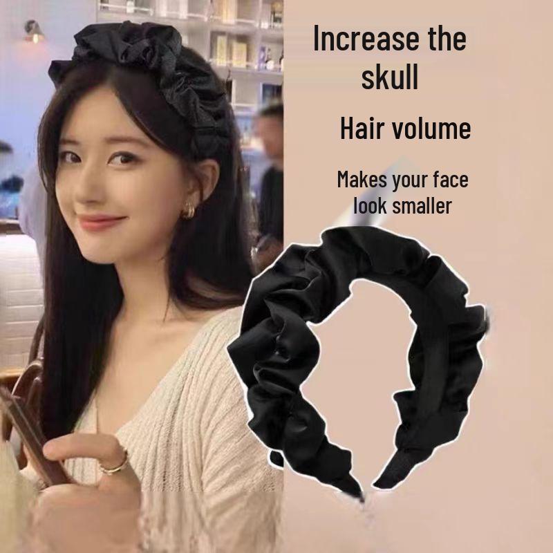 Retro Scrunchie Stirnband mit hoher Krone: Aufwerten mit einem plissierten Holzohr mit breiter Krempe für einen schlankeren Look und verbesserte Höhe.