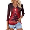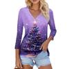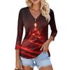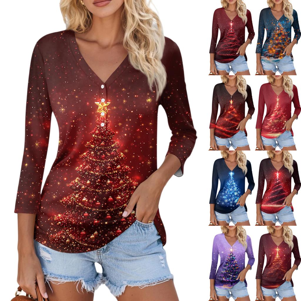 Damen Casual Mode Sexy Bequem Weihnachts-Print V-Ausschnitt Knopf Dreiviertelarm Oberteil