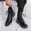 Hohe Herrenlederstiefel mit spitzer Zehenpartie Frühling und Herbst Übergröße Jugendliche mittelhohe Stiefel Personalisierte Politur Mode Schnürstiefel Martin-Stiefel