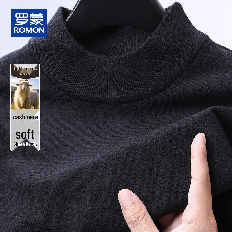 ROMON Men's Solid Color Cashmere Blend Mock Neck Sweater