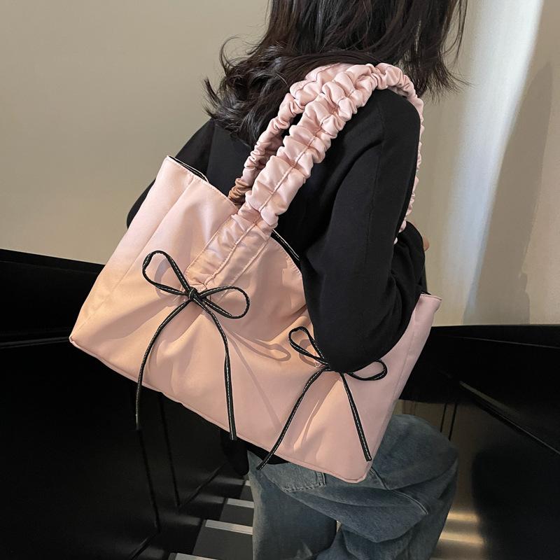Korean version of fashion bow shoulder bag 2025 new large-capacity pleated tote bag slack foreign style handbag