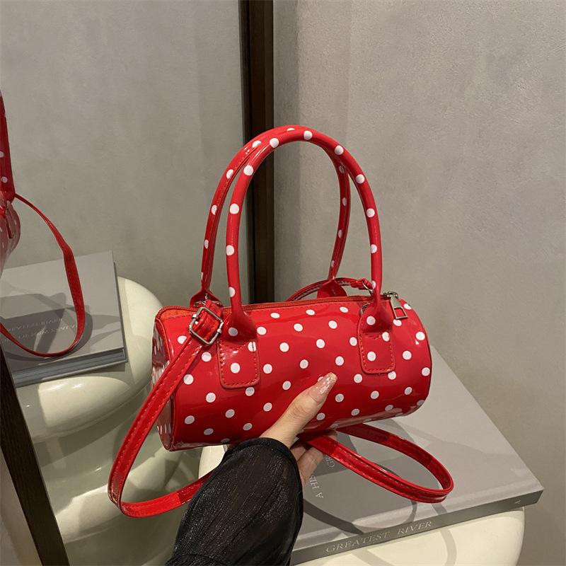 Niche polka dot bag women's 2025 bag new French retro underarm messenger bag exquisite portable women's bag cylindrical bag