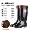 Tall tube autumn men's long tube round head warm fleece rain shoes comfortable low heel plastic rain boots kitchen special water shoes men