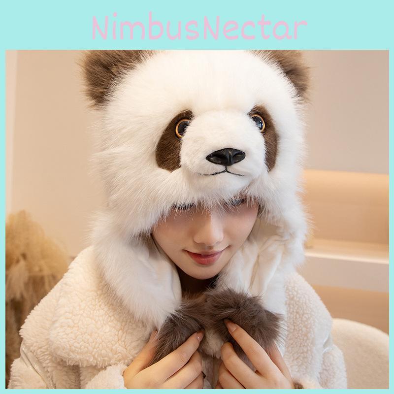 Hua Qizai He Panda Plüschmütze Eltern-Kind Dekoration Wärme Niedlicher Ohrenschutz