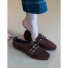 Lammfellversion~ Britischer Stil Retro Quadratkopf Ein-Pedal Slipper Damen Pendeln vielseitig Leder bequeme flache Schuhe