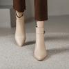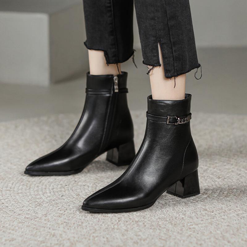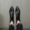 Herbst und Winter Koreanische Version von Niedrigschaft Damenstiefel Gummisohle Große Größe Lederstiefel Neue Runde Spitze Mittlerer Absatz Seitenreißverschluss Martin Stiefel