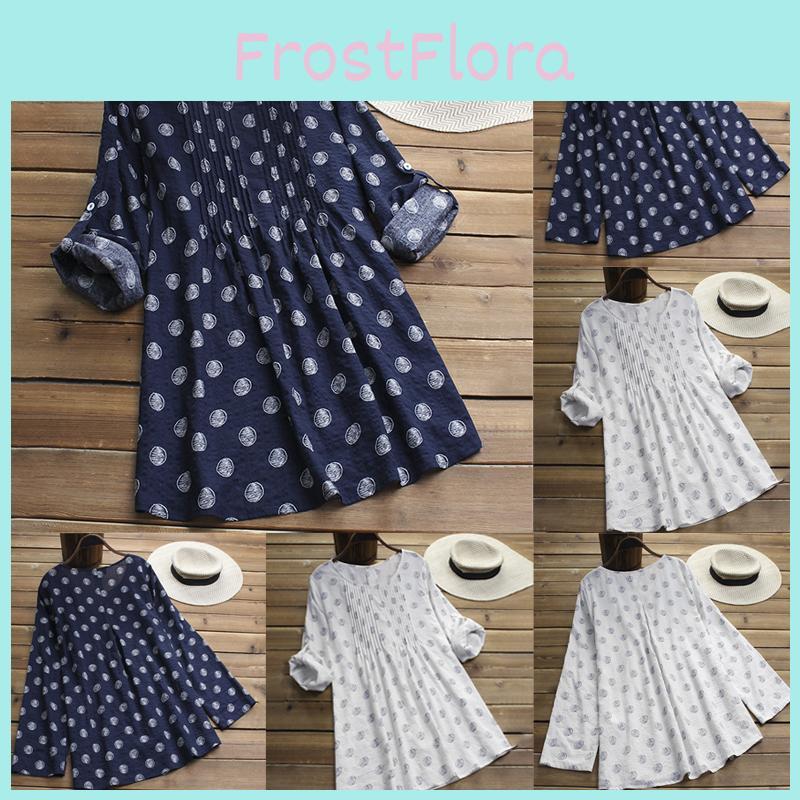 Women Plus Size Printed Dot Tshirt Dress Ladies Casual Baggy Tunic Tops Blouse