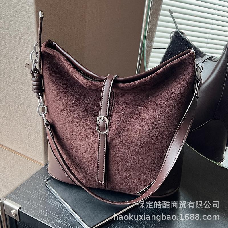 Retro bag women's large capacity 2025 new autumn and winter versatile simple shoulder bag popular commuter bucket bag this year