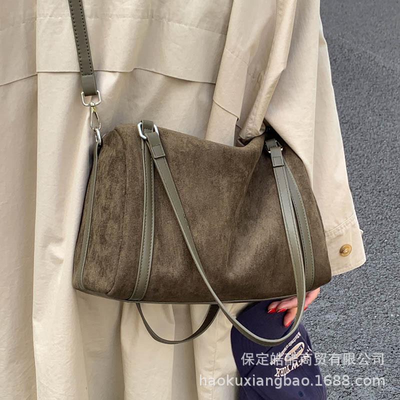 Large capacity bag 2025 new trendy retro versatile fashion high sense shoulder bag suede commuter messenger bag