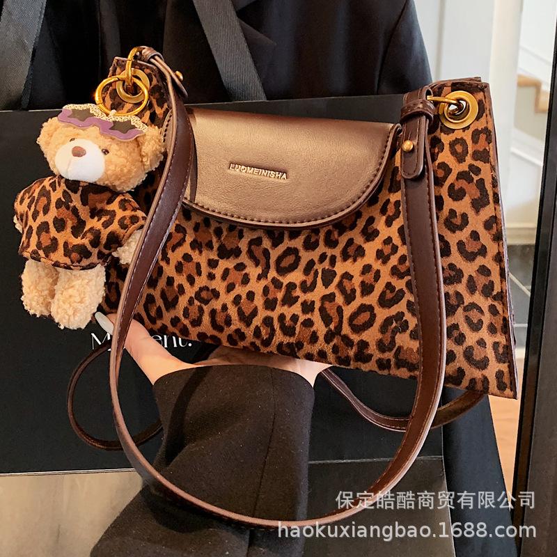 Leopard print bag women's large-capacity 2025 new autumn and winter versatile niche shoulder underarm bag commuter baguette messenger bag