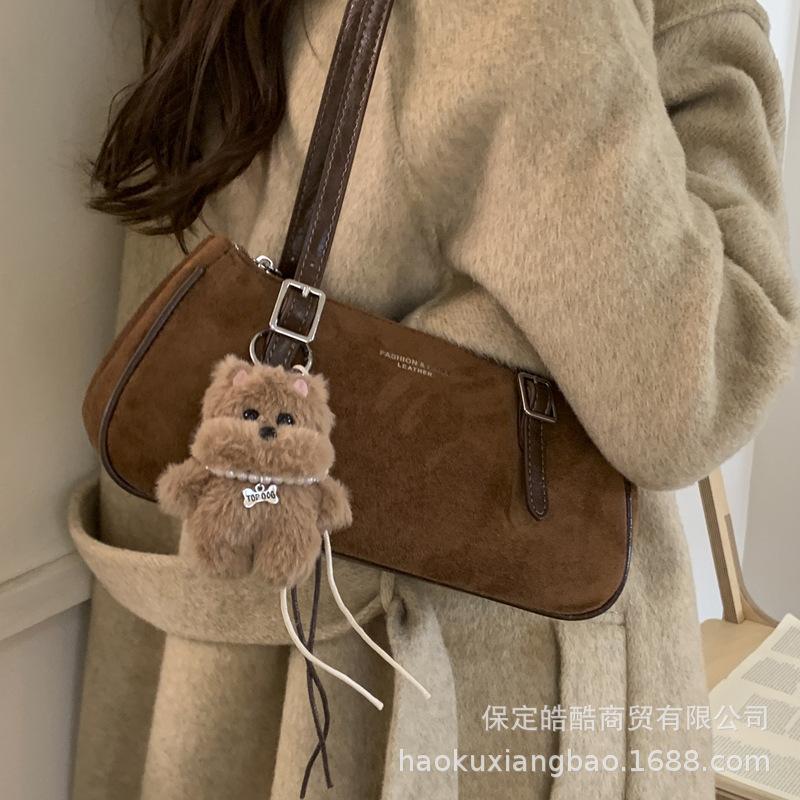 Suede bag women's 2025 new trendy fashion versatile shoulder messenger bag premium sense Maillard armpit bag