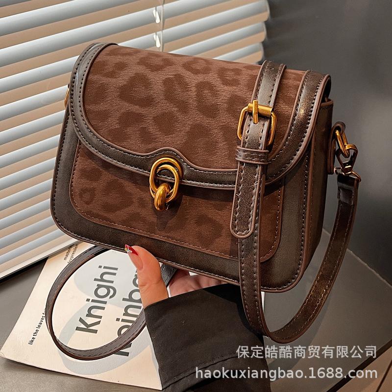 Retro niche leopard print bag women's 2025 new fashion versatile messenger bag autumn and winter explosion super hot small square bag