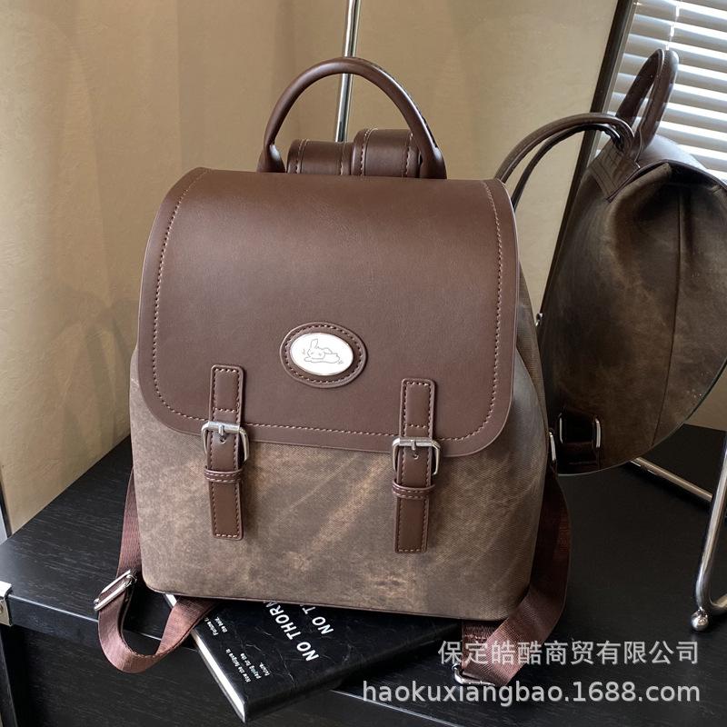 Premium sense retro women's backpack 2025 new commuting versatile super fire backpack going out travel small schoolbag