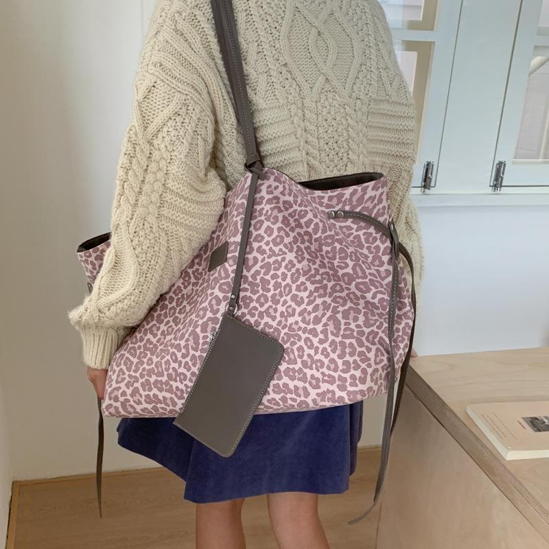 Leopard print canvas bag women's large capacity 2025 new autumn and winter versatile casual shoulder bag student class tote bag