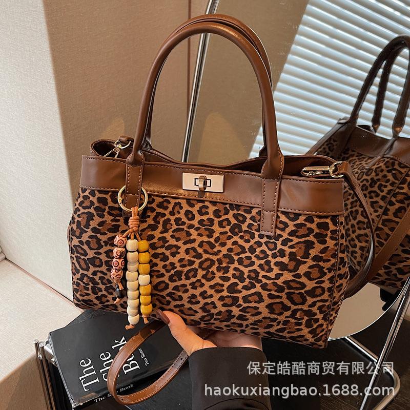 Leopard print bag women's large-capacity 2025 new autumn and winter niche design messenger bag popular ins portable commuter bag